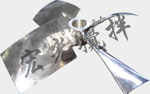 ①旋槳式攪拌器 由2~3片推進式螺旋槳葉構(gòu)成(圖2),工作轉(zhuǎn)速較高,葉片